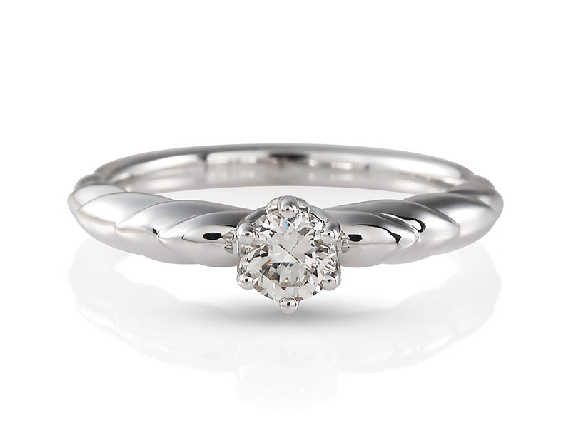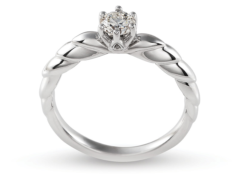 Különleges megjelenésű, angyalszárnyakat mintázó arany eljegyzési gyűrű egy csodás gyémánttal. méret: 51,5 Drágakő: 1 db 4,37 mm vs2 wesselton gyémánt, 0,3 ct