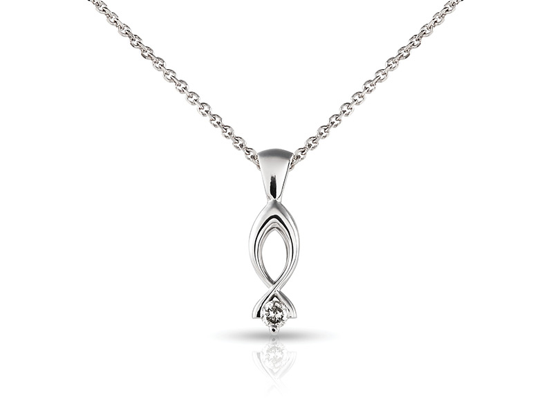 Kis, kedves fehér arany medál egy csillogó gyémánttal fehér arany nyakláncon. Nyaklánc hossza: 45 cm Arany: 14K 2,5 g Drágakövek: 1 db 2,54 mm si yellow gyémánt