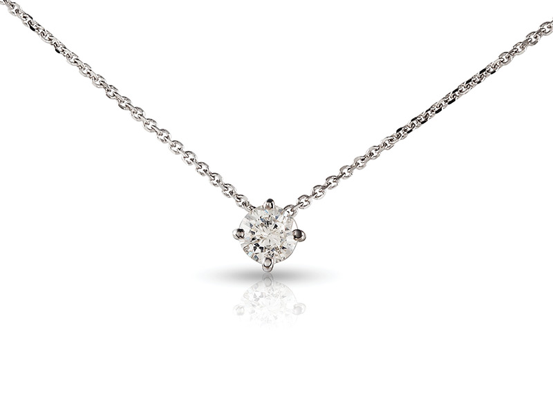 Egy ragyogó, közel fél karátos gyémántot tartó fehér arany medál fehér arany nyaklánccal. Nyaklánc hossza: 45 cm Arany: 14K 1,8 g Drágakő: 1 db 1,45 mm si yellow gyémánt