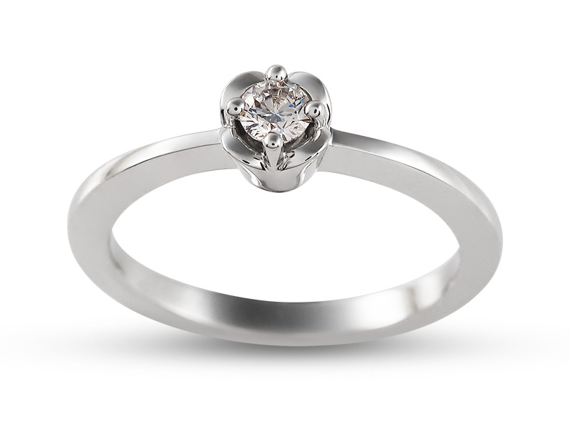 Kecses virág fejű eljegyzési gyűrű fehér aranyból, választható moissanite ékkővel vagy gyémánttal.