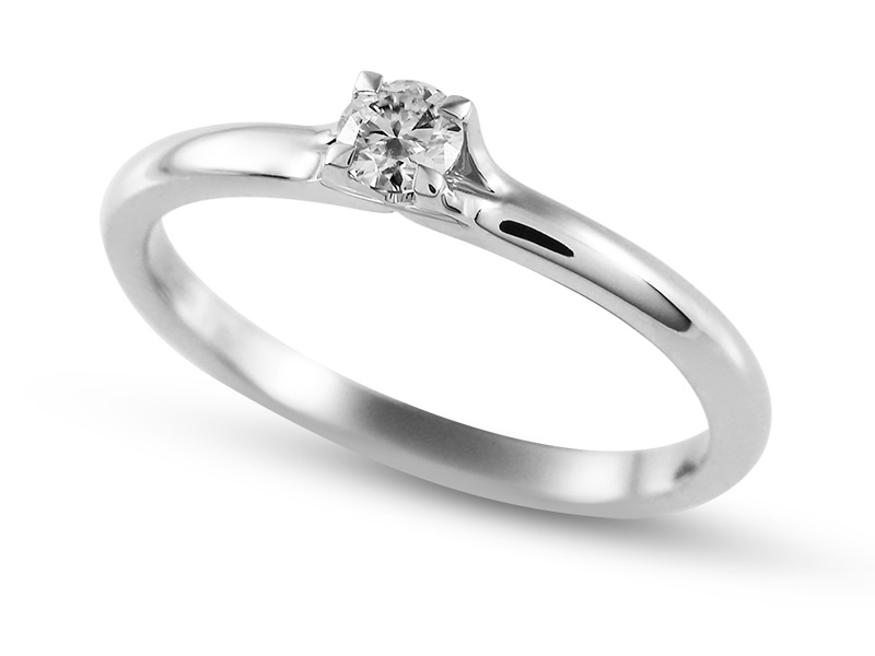 A clean, graceful little engagement ring adorned with a brilliant moissanite gemstone or diamond.